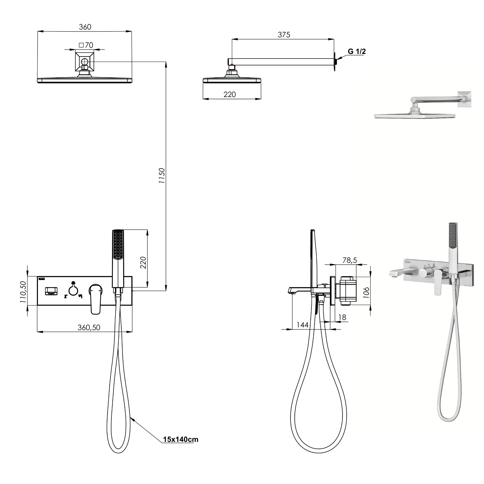 – Kireç kırıcılı el duşu / tepe duşu