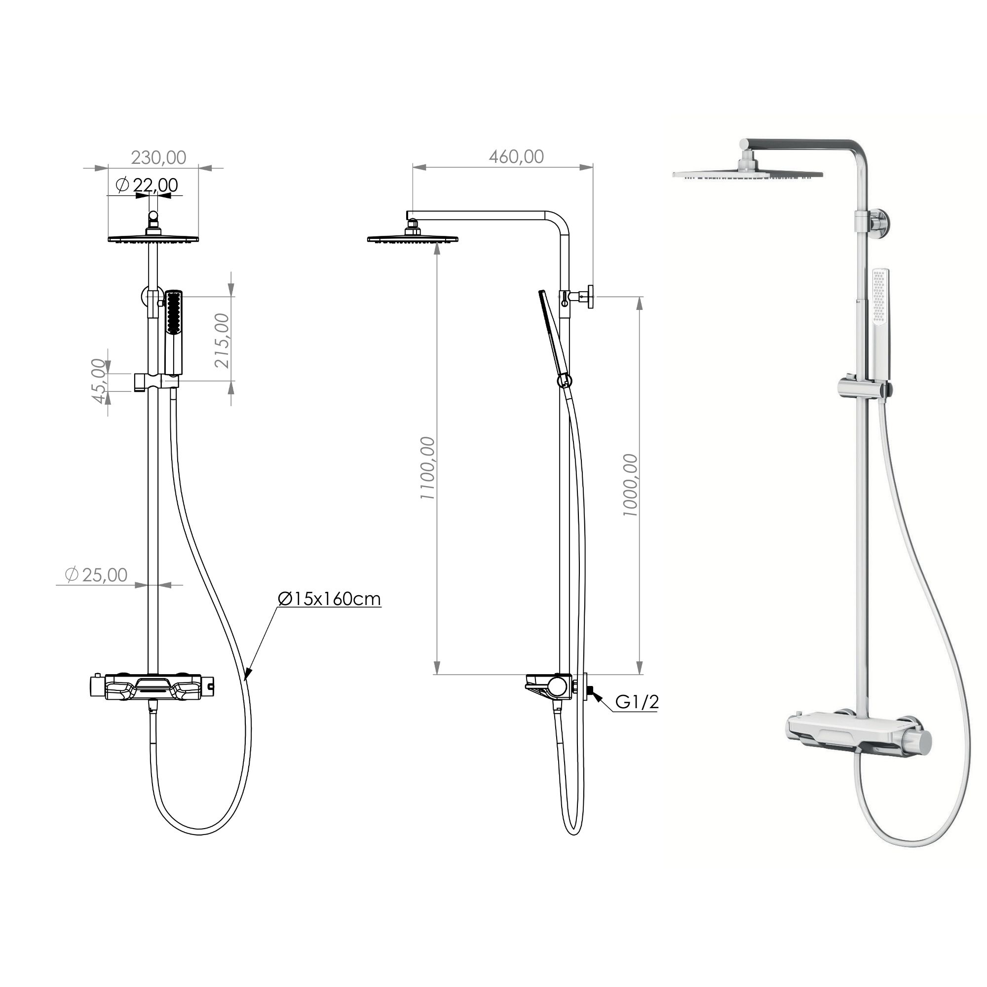 Ürünler - Perla 3 Yönlü Duş Kolonu Termostatik Siyah