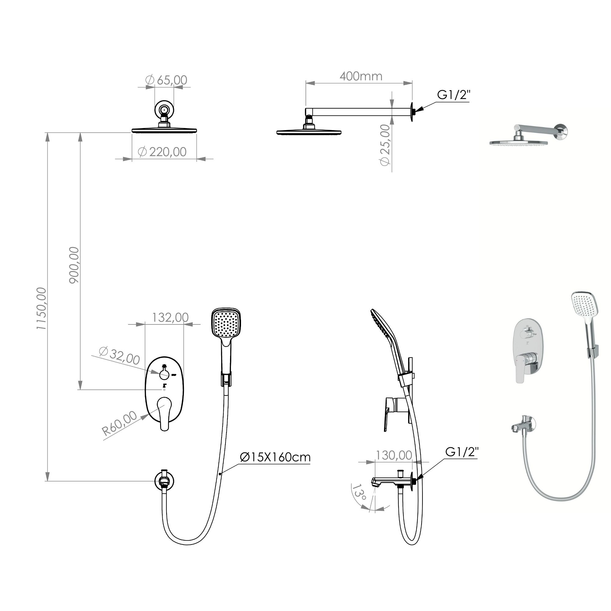 – Kireç kırıcılı el duşu / tepe duşu